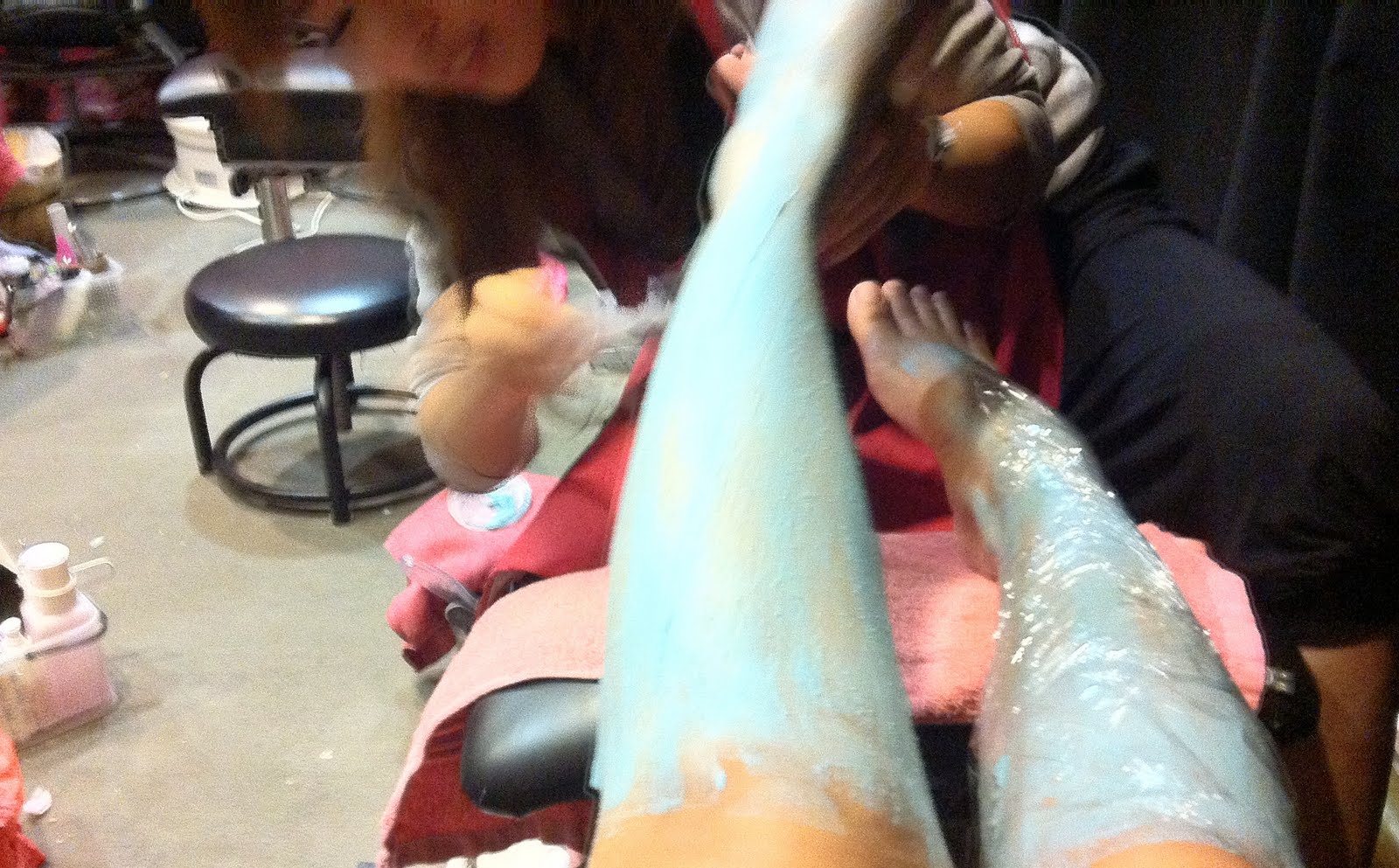 Then I went to Grandeur Nails with Mommy Nerie for our mani/pedi appointment. Here's a photo of my collagen mask, and Wendy my therapist.. hehehe